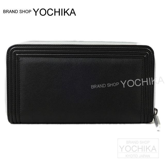 2015年 秋冬 新作 CHANEL シャネル ボーイシャネル バイカラー ラウンドジップ長財布 黒Xシルバー カーフXゴートスキン シルバー金具 A80742 新品